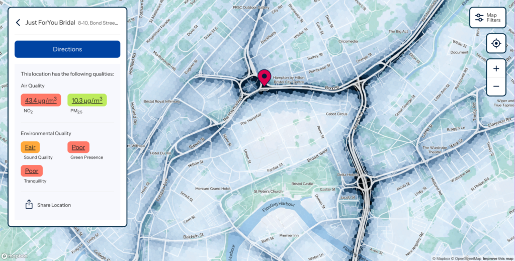 - Engage residents with dynamic, interactive air quality maps (see sotonairmap.com and soon-to-be-released Bristol Airmap) and provide optimised routing through cleaner air, greener and quieter corridors.